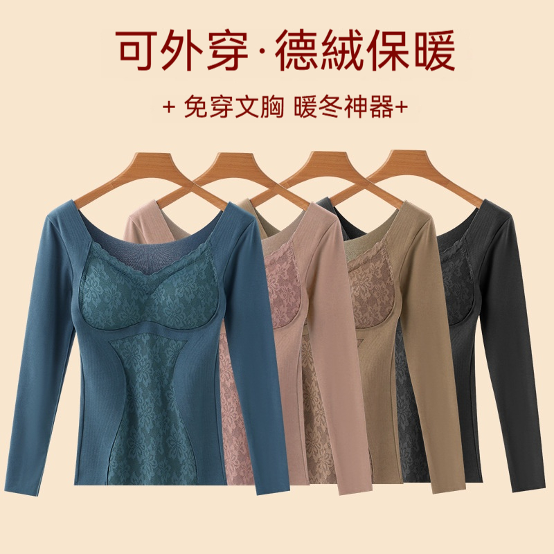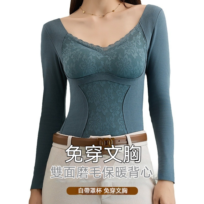 自帶胸墊的保暖衣 雙面加厚德絨 貼身穿親膚又暖和 顯瘦有型還不臃腫 一件頂三件