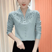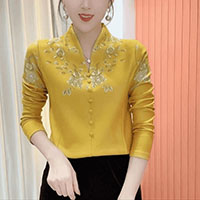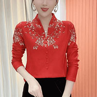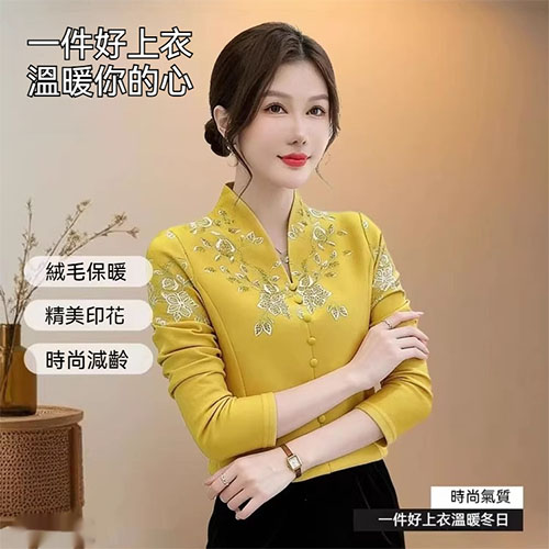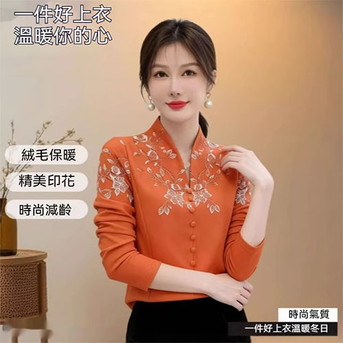 [1] 氣質V領印花加絨打底衫 冬季新款時尚百搭減齡顯瘦衫衣,1入組 NT$1098
