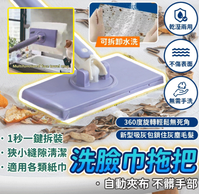 [4]清潔能手,買一送一「萬用夾佈、夾洗臉巾,重複利用,省錢!」夾佈洗臉巾拖把,2入組 NT$899