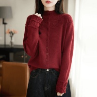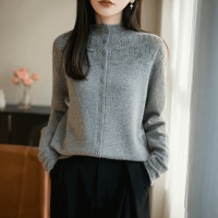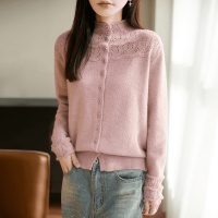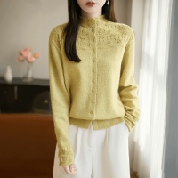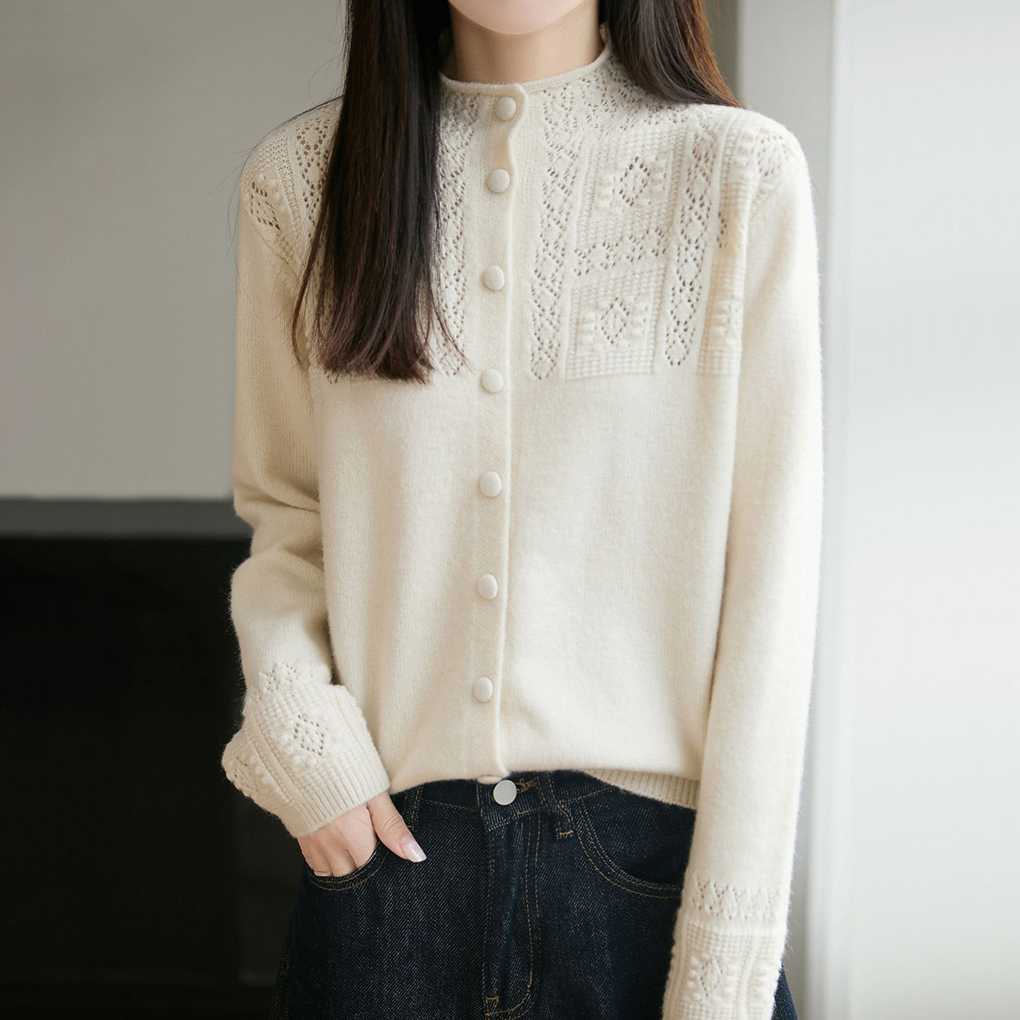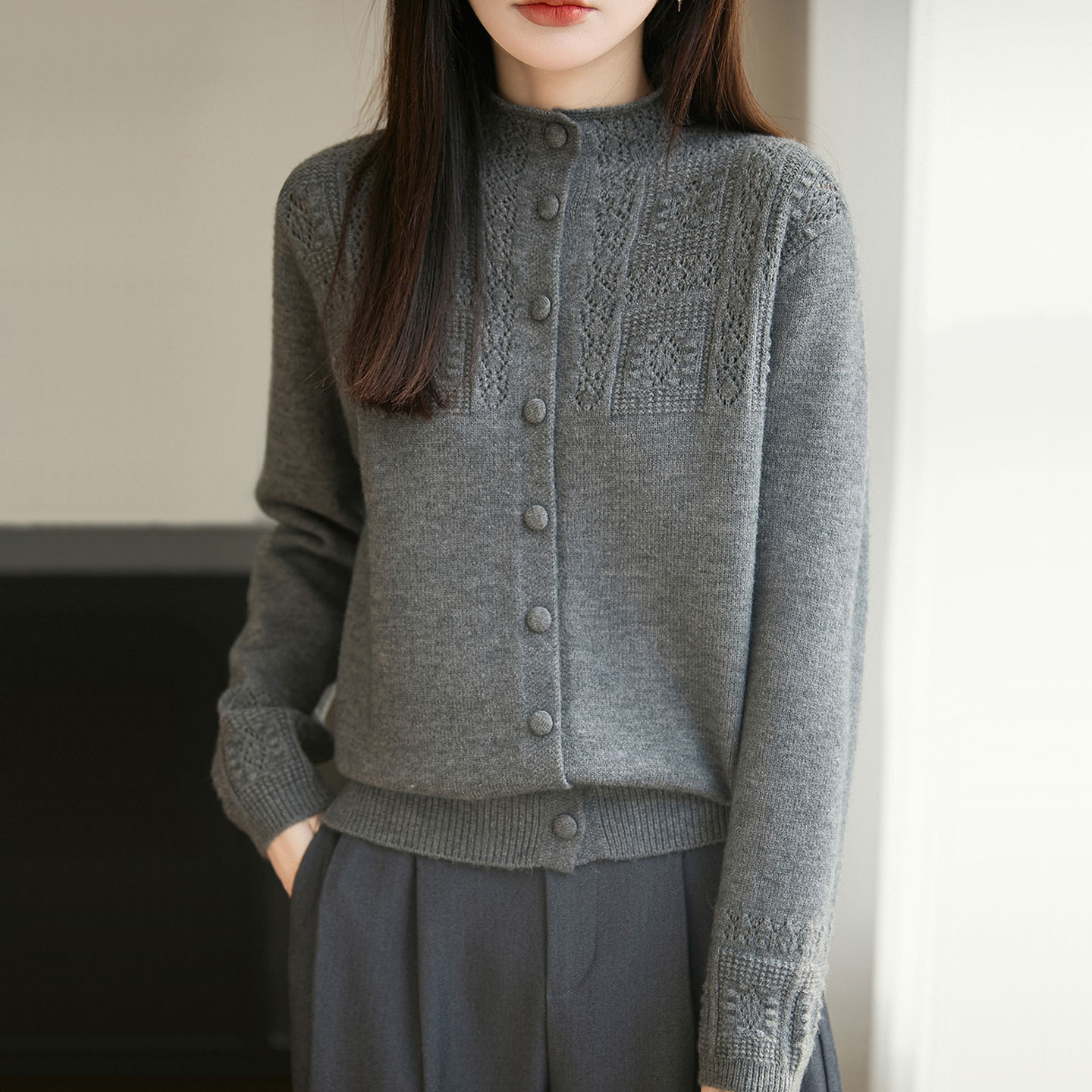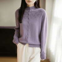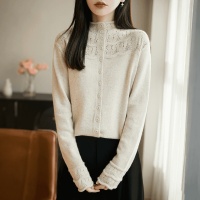 半高領提花女款毛衣外套秋冬純色百搭時尚寬鬆外搭衫,立領鏤空鉤花透出朦朧肌膚,藏肉顯瘦不臃腫~